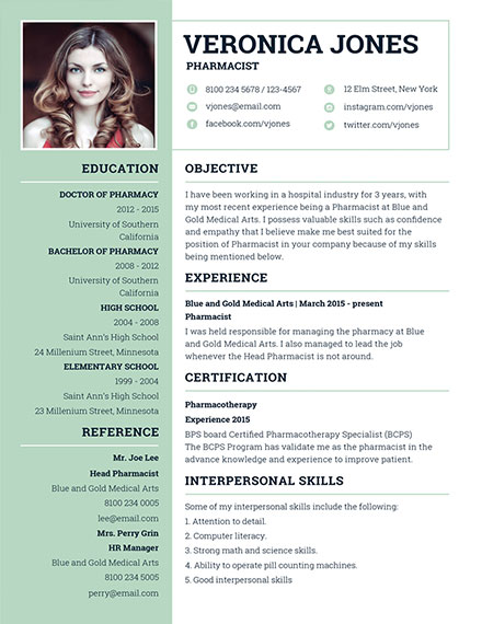 Pharmacists dispense prescriptions issued by physicians and educate customers about how to take medications safely. Use white space to your advantage. Sign up to choose your template import example content and customize your content to stand out in your next.